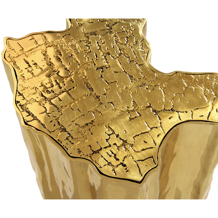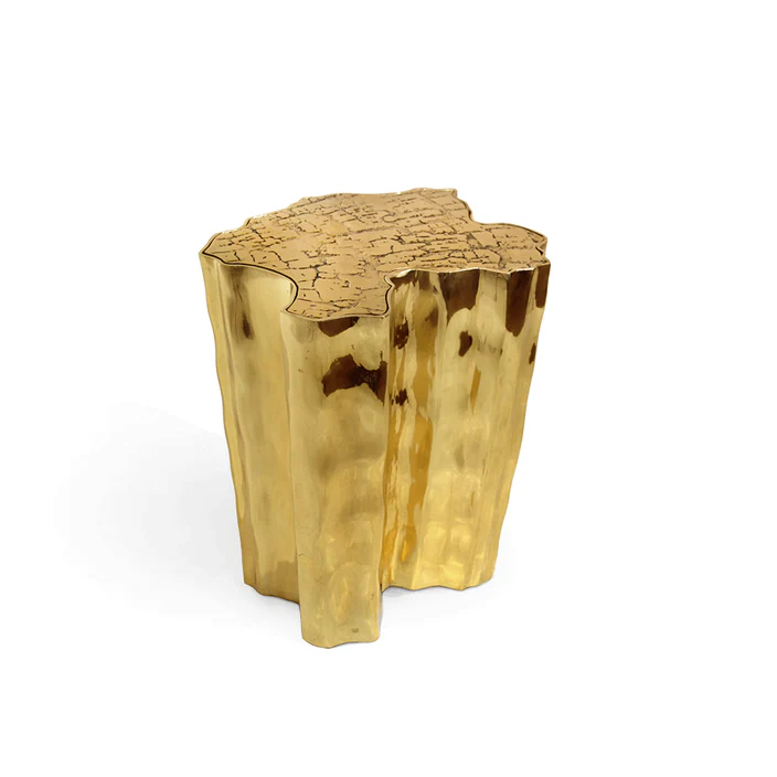 At first glance, the Goldwood Side Table captures the rugged charm of a wooden log. However, take a closer look and you’ll notice the brilliance of its construction. Instead of actual wood, this table is made from solid steel and finished with a stunning golden electroplated coating.