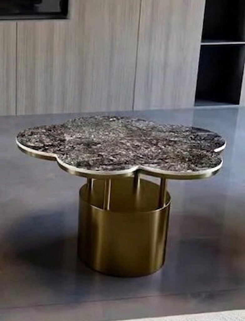 At first glance, what truly sets the Big Side Table apart is its distinct floral marble top. Unlike conventional circular or square tables, the petal-inspired design introduces softness and movement into a room. The marble surface reflects natural veining patterns, ensuring that each piece feels unique—almost like a work of art carved by nature itself.