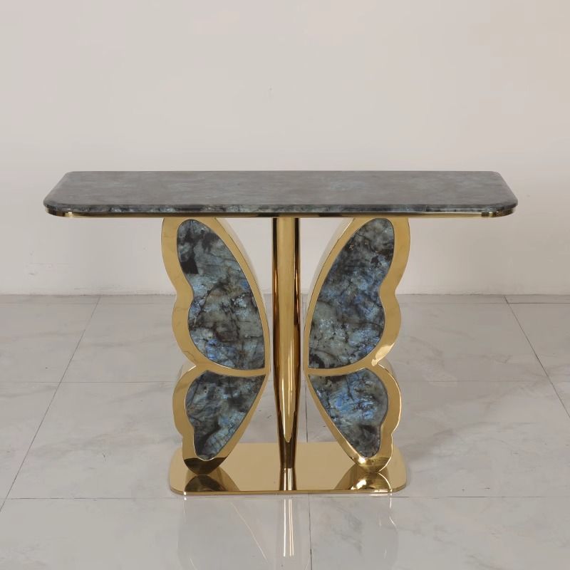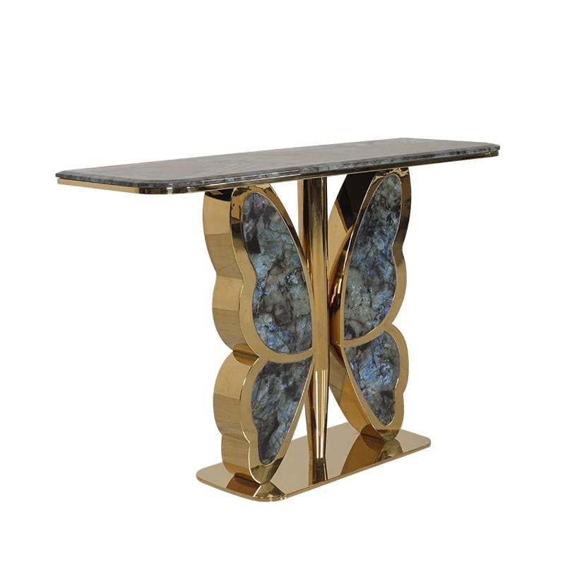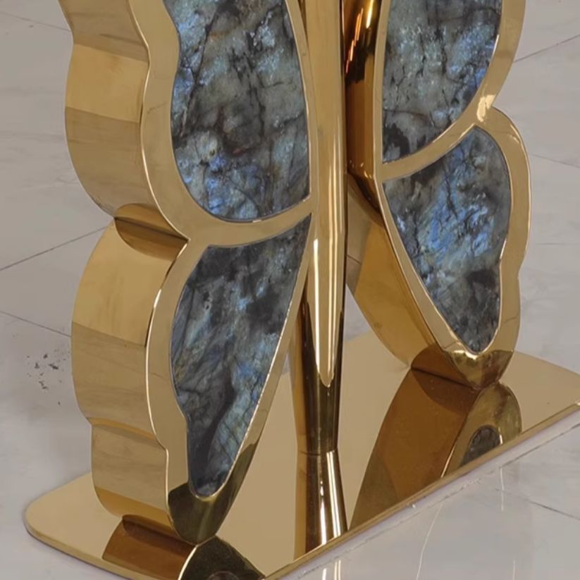 Butterfly display tableWhat makes this console truly premium is its golden electroplated stainless steel frame. This is not ordinary metal. It undergoes a specialized plating process that enhances: